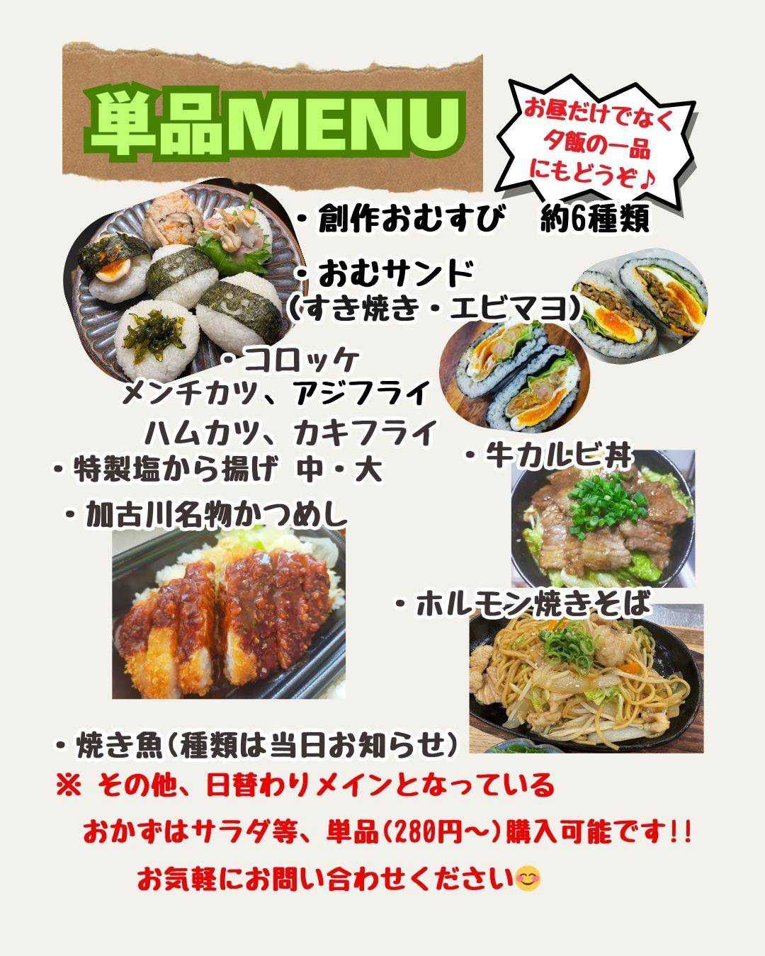 単品menuでおむすび1つから