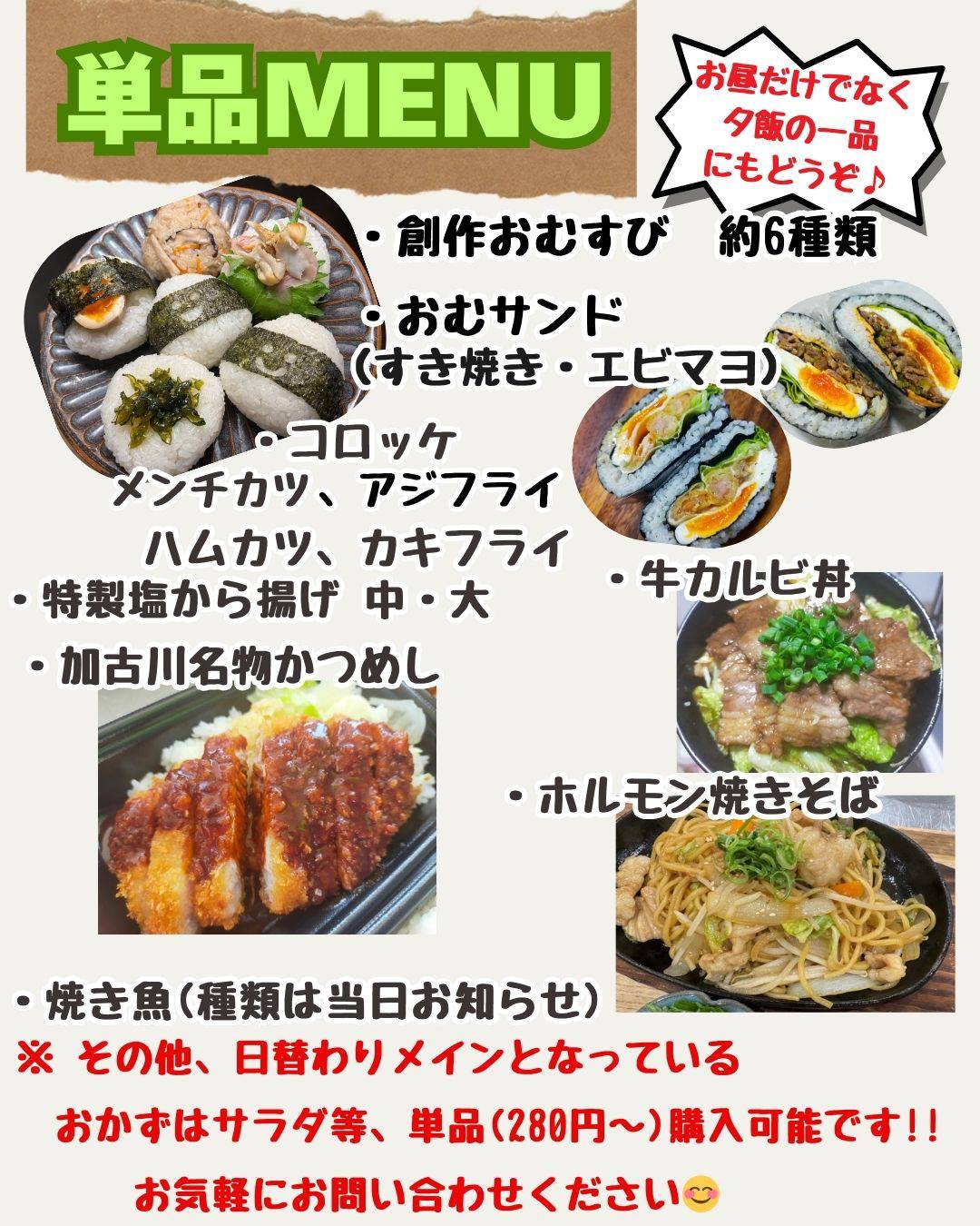 単品menuでおむすび1つから