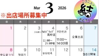 メニュー 出店カレンダー 2026年3月